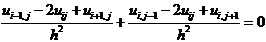 即任一节点(i,j)上uij的值等于周围相邻节点上解的值的算术平均,这种形式的差分方程称为五点格式,在边界节点上取