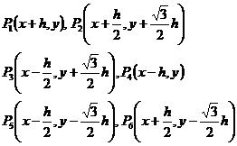 取P0(x,y)为中心,它的周围6个邻近节点分别为: