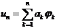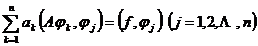 where a k is an undetermined constant, substitute u n into u in the equation Au=f , and take the inner product of both ends with j ( j =1,2, … , n ) to obtain n algebraic equations of a k