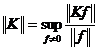 Then K is called a bounded operator, where it represents the norm ( modulus ) of the function f . The largest lower bound of all M that makes the above inequality true is called the norm of operator K , denoted as , it can also be defined as![]()