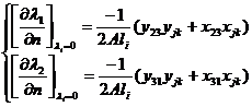 From the inverse transformation matrix of the § 2 triangular element, the value of the outer normal derivative on each side can be obtained