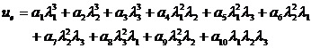 (15) or ( 17 ) represent the correspondence between the node parameter values ​​of u and the coefficients of the interpolation polynomial, and there are similar relational expressions for the undetermined functions v and w . If written in vector form, the interpolation polynomial is