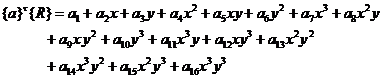 [ Undetermined coefficient method ] The undetermined coefficient method is to directly solve the coefficients of the interpolation polynomials from the 4p node parameter values  . Generally speaking, the number N = of complete n -degree polynomial coefficients { } will be greater than 4 p , and it is necessary to add N - 4 p conditions to the polynomial to uniquely determine these coefficients. The easiest way is to restrict the form of the polynomial as in § 3 (eg restrict the polynomial to a polynomial of degree k , that is , for x , y or z , the number of coefficients is reduced to ) or remove some The higher-order terms (that is, setting the corresponding coefficients to zero) make the number of coefficients 4 p , assuming that the restricted interpolation polynomial is rewritten as