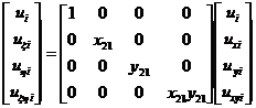 In the formula , respectively represent the column vector composed of the polynomial terms (the number of terms is 4 p ) and the value of their partial derivatives at node i . Arrange all the node parameter values ​​of this unit into a column vector , and use U to represent the 4 p × 4 p coefficient matrix formed by the sequential arrangement of p 4 × 4 p coefficient matrices on the right side of the above equation , then the 4 p equations can be abbreviated as