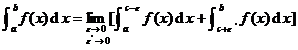 [ Generalized integral of unbounded functions ] Let the function f ( x ) have only one flaw point x = c on the given interval [ a , b ] , that is, the function f ( x ) is unbounded in the neighborhood of the point x = c, and in [ a , b ] a , c - ε ] and [ c + ε ', b ] are integrable, ε , ε ' are any small positive numbers, when ε and ε ' tend to zero independently, the limit