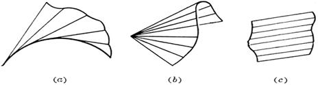The envelope surface of the single-parameter plane family of developable surfaces is called the family's developable surface . The envelope surface is the surface, cone or cylinder formed by the tangent of the space curve (Fig. ( a ), ( b ), ( c ) ) |