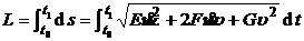 In the formula, E , F , and G are the first basic quantities of the surface ( valued at point M ). The intersection angle of the coordinate lines u = constant and v = constant is determined by the necessary and sufficient conditions for the orthogonality of the coordinate lines to be: