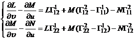 where E , F , G and L , M , N are the first and second fundamental quantities of the surface, respectively; the six coefficients are called the Christopher notation of the second kind of the first fundamental quadratic form, and their expressions are equations The group ( 1 ) is called the partial differential equation of the surface, also known as the Gauss formula; the equation group ( 2 ) is called the External Ingledon formula; ( 1 ), ( 2 ) are collectively called the basic formula of the surface, the characteristics of these formulas Yes, the derivative of a vector is expressed as a linear combination of the vector itself, and its coefficient is only related to the first and second fundamental quantities of the surface .![]()