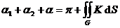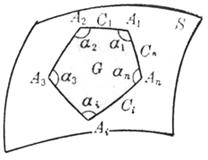 Let the geodesic curvature representing any point on the curve C be the surface area element, and be the interior angles of the corners of C ( figure ), then the double integral on G![]()