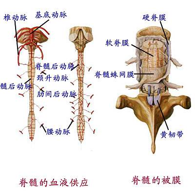 来自椎动脉、肋间动脉和腰动脉等的分支。主要有脊髓前动脉和脊髓后动脉。
