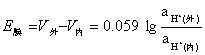 | 玻璃膜电极是对氢离子活度有选择性响应的电极,其结构如图1.4所示。 玻璃膜内为0.1mal/L的Hcl内参考溶液,插入涂有Agcl的银丝作为参比电极,使用时,将玻璃膜电极插入待测溶液中。在水浸泡之后,玻璃膜中不能迁移的硅酸盐基团(称为交换点位)中Na的点位全部被H占有,当玻璃膜电极外膜与待测溶液接触时,由于溶胀层表面与溶液中氢离子活度不同,氢离子便从活度大的相朝活度小的相迁移,从而改变了溶胀层和溶液两相界面的电荷分布,产生外相界电位V外;玻璃膜电极内膜与内参考溶液同样也产生内相界电位V内,跨越玻璃膜的相间电位E膜可表示为 |