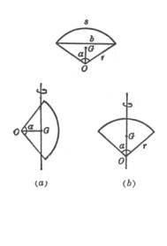 面积 重心 转动惯量 (a)转轴与GO重合(图(a)) (b)转轴通过G点,且平行于直径AB(图(b)) 弧长 面积 重心 转动惯量 (a)转轴在图形平面上通过G点,且垂直于GO(图(a))