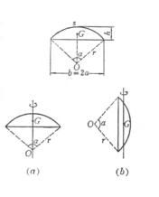 弦长 拱高 面积 重心 (当 转动惯量 (a) 转轴与GO重合(图(a)) (b) 转轴通过重心G,且与弦平行(图(b))