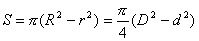 R为外半径,r为内半径,D为外直径,d为内直径,O为圆心 |
