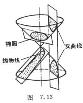 二次曲线都是用平面切割正圆锥面的截线.因此二次曲线也称为圆锥截线(图7.13)