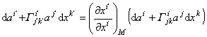关于位移dxi的绝对微分.平行移动的条件为