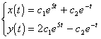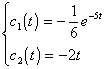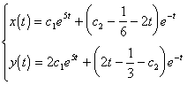 其次,利用常数变易法求非齐次线性方程组(1)的一个特解.c1 ,c2看成是t的函数,解下列方程组