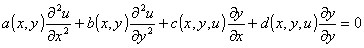 就是拟线性方程,在拟线性方程中,由最高阶偏导数所组成的部分称为方程的主部.上面方程的主部为