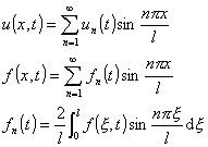 将u(x,t)和f(x,t)展开成傅立叶级数: