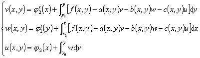 它可用逐次逼近法求解,显然x=x0,y=y0为拉普拉斯双曲型方程的特征线,所以此法也称为特征线法.