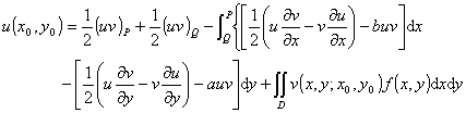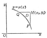 M(x0,y0)不是y=(x)上的点,过点M作特征线x=x0,y=y0y=(x)PQ,记曲边三角形PMQD(图14.6),在D上用格林公式(本节,四)得