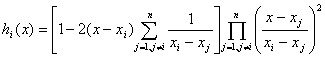 [带导数的埃尔米特插值公式]  已知函数y=f(x)及其导数n个节点上的值为,那末对于插值区间内任一点x,可按下式计算函数值