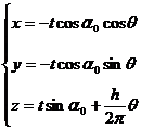 式中是两个参数.=常数”表示曲面上不同的螺旋线,它们有相同的螺距h,但有不同的螺旋角;“=常数”表示不同位置的渐开线.