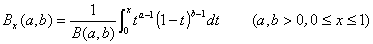不完全贝塔函数(Incomplete Beta Function)的定义式为
