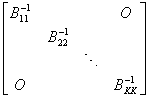 [分块对角矩阵] 主对角线上的子阵都是方阵,其余子阵都是零矩阵的分块矩阵称为分块对角矩阵.一般形式为