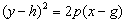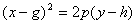 顶 点 A(g, h) 焦 点 准 线 |