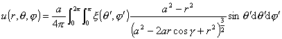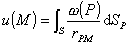 式中v(P)称为面密度,面积分u(M)称为双层位势,rPM为点M与变点P之间的距离,rPM为矢量