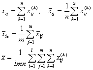 设在因素Ai和因素Bij的条件下作n次试验,试验数据为