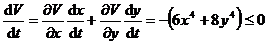 ( ii ) When t ≥ t 0 , the full derivative of V along the integral curve of the system of equations ( 1)