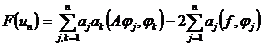 where a k is an undetermined constant, substitute u n into u in the equation Au=f , and take the inner product of both ends with j ( j =1,2, … , n ) to obtain n algebraic equations of a k