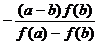 Assuming that f ( x ) is continuous on [ a , b ] , , are invariant, and f ( a ) f ( b )<0 (it is assumed here that f ( a ) <0, f ( b )>0 ) . The line at points ( a , f ( a )) and ( b , f ( b )) is:![]()