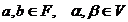 [ Linear operations ] Let F be a field whose elements a , b , c , ... as quantities; V be a set of objects of any kind whose elements are denoted by the Greek letters α , β , γ , ... . Determine the two algorithms : Addition of elements in 1