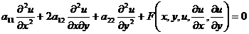 In the neighborhood D of a point P ( x 0 , y 0 ) , the equations are classified according to the sign of Δ = a 12 2 - a 11 a 12 :